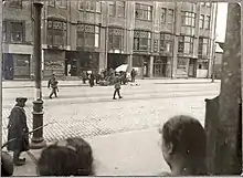At 5.30 PM the Germans reached the Erottaja square where they took the Swedish Theatre by using capitulated Reds as human shields. Another known case where the Germans used human shield was later in the same evening as they marched over the Pitkäsilta bridge behind 300 capitulated Reds.[1] According to a German officer, interviewed by a Finnish journalist, they had learnt the method from the British.[7] At this time, there was also hard fighting at the Helsinki Railway Station as well as in the nearby Kluuvi district. A squad of German Navy Marines landed Katajanokka at 7 PM and soon entered the Kruununhaka district.[6]