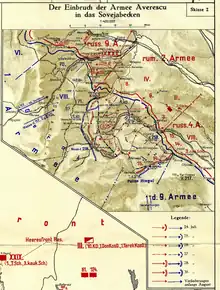The Romanian order of battle provided for the principal offensive to unfold in three phases. The first phase envisioned breaking through the enemy defenses between Încărcătoarea clearing (711 m (2,333 ft)) and the village of Mărăști with the aim of taking Teiuș Hill. The 3rd Infantry Division and right-flank forces of the 6th Infantry Division were selected to break through, after which they were to hold the Încărcătoarea clearingCâmpuriVizantea MânăstireascăGăurile line. If needed, second-order troops could be sent in. In the second phase, the 4th Army Corps was to join the fight by starting a left-flank offensive towards the Coada VăiiBabei clearing. To the south, the advance was to take place in cooperation with the 4th Russian Army's right flank and with the aid of the 2nd Romanian Army, its objective being to reach the Coada VăiiBabei clearingRotileștiTeiuș HillValea Teiușului line. The third planned phase envisioned the front shifting to the Sboina Neagră Peak hills to the north of Lepșa, north of the Putna RiverValea Sării line. The enemy commanders were informed about the Allied armies' operations, but thought they had the ability to repulse their offensive and even to launch a counterattack.