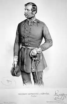 Afterward, the commanders of the Bánság Corps held a council of war in Zichyfalva. At this meeting, the majority proposed to try to achieve a decisive turnaround in the course of the war in Southern Hungary by capturing Pancsova, the main Serb camp.[5] But Major Károly Leiningen-Westerburg objected that if this attack had not been launched after the Battle of Jarkovác, before the aforementioned battalions were sent to Pest, now it would be risky to do this with the remaining 4 battalions, but he was voted down.[5] In this planned attack János Damjanich, the most successful Hungarian military leader in Southern Hungary could not participate, because he was incapacitated by some kind of rheumatic disease.[6] There were also problems on the opposite side, because Voivode Stevan Šupljikac, the Serbian high commander died on 27 December,[6] or on 15, according to the official death certificate issued by the patriarch Josif Rajačić,[7] and the command of the Austro-Serbian corps was temporarily taken over by the Colonel Ferdinand Mayerhofer von Grünhübel, Austria's consul in Belgrade.[6]