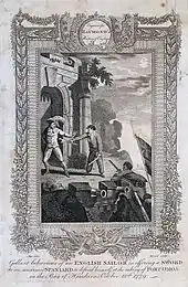 This incident was first put into print by William Humphrey in 1780,[14] and later by John Thornton in 1783,[15] John Record about 1785,[16] and an unknown engraver for The Gentleman's and London Magazine: Or Monthly Chronologer in 1789.[17]