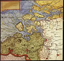 Van Wijn solved some doubts about the battle by pointing to two documents by Margaret. One of 24 June 1315 and one of 29 June 1351, respectively referring to a battle 'at Arnemuiden',[20] and 'between Arnemuiden and Veere'.[21] Van Wijn then continued about whether it would have been a land battle or a sea battle. He found that Johan Reygersberg called it a sea battle, and others a land battle. Van Wijn choose to believe Reygersberg, because he was a local historian, who might have seen unknown sources. Reygersberg stated that the fight was between Veere and Arnemuiden, near the Vingerling of Der Veere.[22][23]