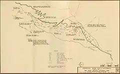The soldiers, civilian volunteers, and Nez Perce scouts descended into White Bird Canyon along a wagon road from the north east.[6] An advance party, consisting of Lieutenant Edward Theller, Trumpeter John Jones, a few Nez Perce scouts employed by the Lapwai Agency, seven soldiers from Company F and civilian volunteer Arthur "Ad" Chapman made first contact with the truce party. Yellow Wolf later gave this account: