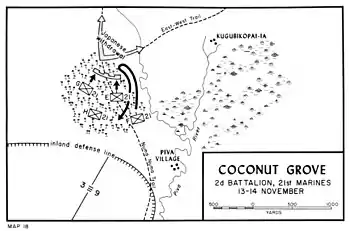 The Battle of the Coconut Grove was a battle between United States Marine Corps and Imperial Japanese Army forces on Bougainville Island during the Pacific War. The battle took place on 13–14 November 1943 during the Bougainville campaign, coming in the wake of a successful landing around Cape Torokina at the start of November, as part of the advance towards Rabaul as part of Operation Cartwheel.