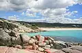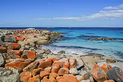 The Bay of Fires is a region of white beaches, blue water and orange-hued granite (the colour of which is actually produced by a lichen). The northern section of the bay is part of Mount William National Park; the southern end is a conservation area.[5]