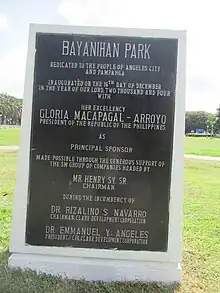 - ↑ "Historical Landmarks - Bayanihan Park". Provincial Government of Pampanga. Retrieved December 3, 2018.