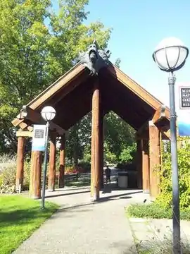 Bear Gargoyle is an outdoor 1988 sculpture by Wayne Chabre, installed at the University of Oregon Museum of Natural and Cultural History in Eugene, Oregon, United States. It depicts the head of a grizzly bear with a Kwakwaka'wakw (Kwakiutl Indian) bear mask on top. The sculpture is made of hammered 32 oz. copper over a stainless steel frame and measures approximately 5.5 feet (1.7 m) x 4 feet (1.2 m) x 5 feet (1.5 m). Its condition was deemed "treatment needed" by the Smithsonian Institution's "Save Outdoor Sculpture!" program in March 1993. The sculpture is administered by the University of Oregon.[1]