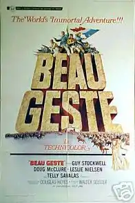 Beau Geste is a 1966 adventure film based on the 1924 novel by P. C. Wren filmed by Universal Pictures in Technicolor and Techniscope near Yuma, Arizona and directed by Douglas Heyes. This is the least faithful of the various film adaptations of the original novel. In this version, there are only two brothers, rather than three, and there are no sequences showing Beau's life prior to his joining the Legion.