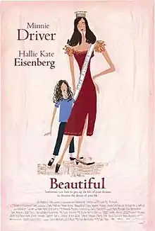 Beautiful is a 2000 American comedy drama film directed by Sally Field (in her feature film directorial debut), starring Minnie Driver and Hallie Eisenberg. The plot deals with the sacrifices that contestants in the Miss America pageant typically must make.[2] The film had its world premiere at the Toronto International Film Festival[3] and was released theatrically on September 29, 2000. It received negative reviews and was a commercial disappointment.