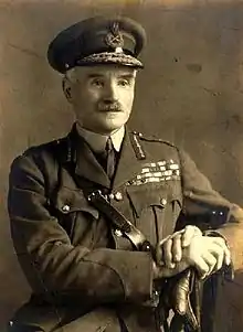 He served in the First World War, initially as commander of the 2nd Cavalry Brigade on the Western Front and then as General Officer Commanding (GOC) 1st Cavalry Division, also on the Western Front, in 1914.[2] De Lisle then became GOC 29th Division, leading the division at the Third Battle of Krithia during the Gallipoli campaign of April 1915 to January 1916.[2] He returned to the Western Front in 1916 and fought at the Battle of the Somme before moving on to become GOC XIII Corps in March 1918 and GOC XV Corps in April.[2]