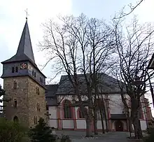 Up to 17 knightly families were resident in the village. In the end it was ruled by fewer noble families, namely von Dalberg, Nebel, Knebel, Beckers, Dienheim, Nordeck, Wallbrunn, Partenheim and Quernheim.[13] For the building of the Muttergotteskirche (“Mother of God Church”, the one mentioned earlier, used as a “simultaneous” church), Popes Nicholas IV in 1292, Boniface VIII in 1313 and Benedict XII in 1341 published letters of indulgence, which can still be found in the church archives, and which show that half a century was spent building the church.
