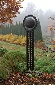 Scattered throughout the 20 developed acres (8.1 ha) are small and large pieces of sculpture by Jill Nooney, one of the co-founders. Nancy Grimes, the previous owner of New England Garden Ornaments in North Brookfield, called Nooney "the most imaginative and energetic force in modern American garden ornamentation."[7] Many of her sculptures are from old agricultural tools.[8]