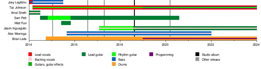 - Joey Legittino – bass (2014–2015); backing vocals (2014–2016); lead vocals (2014)
