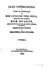 - Livro da ensinança de bem cavalgar toda sela, escrito pelo Senhor Dom Duarte, Rei de Portugal e do Algarve e Segnhor de Ceuta, trascrito do manuscrito extante na Biblioteca Real de Paris, Typ. Rollandiana, Lisbon, 1843