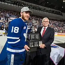 Smith receiving the Calder Cup as the captain of the Toronto Marlies