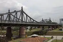 The Benjamin Constant Bridge (Portuguese: Ponte Benjamin Constant), also known as Metallic Bridge (Ponte Metálica), is a suspension structure located on Sete de Setembro Avenue that crosses the Igarapé do Mestre Chico between the Cachoeirinha and Centro neighborhoods, in the Brazilian city of Manaus, capital of the state of Amazonas.[1]