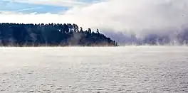 During low-water period, especially in spring, the area of the reservoir decreases sharply.[1]