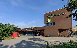 In 2003 the distance to the U-Bahn station Wilmersdorfer Straße was shortened by shifting the two S-Bahn platforms about 200 m (660 ft) further to the east and the opening of a new eastern entrance near the corner of the shopping street. In recent years the tracks have been equipped with noise barriers and the 1970s entrance building has been thermally refurbished.