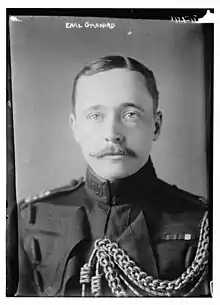 In 1896, Granard was commissioned into the 3rd (Militia) Battalion, Gordon Highlanders, but on 29 November 1899 he transferred to a regular commission as a second lieutenant in the Scots Guards. Following the outbreak of the Second Boer War in late 1899, he was with the 2nd Battalion of his regiment as it left Southampton for South Africa on the SS Britannic in March 1900.[10] He served with the 1st Battalion in South Africa from 1900 to 1902, taking part in the Battle of Belfast (August 1900) and operations at Komatipoort.[11] While in South Africa, he was promoted to lieutenant on 20 July 1901.[12][13] Following the end of the war, Lord Granard left Cape Town for England on the SS Simla in late July 1902.[14] Promotion to captain followed in 1905. In 1908 he was appointed Lieutenant-Colonel in the Post Office Rifles. He resigned his commissions in the Post Office Rifles in 1910 and the Scots Guards in 1911. In 1916 he was recalled to command the 5th Battalion, Royal Irish Regiment. He was later Military Secretary to the Commander-in-Chief of the Salonika Forces from 1917.