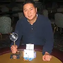 Bernard Lee (born May 16, 1970) is a professional poker player who first came to prominence by finishing 13th in the 2005 World Series of Poker (WSOP) Main Event.[1] Since then, Lee has enjoyed some success in other poker tournaments. In October 2008, Lee won the $600 No-Limit Hold’em Shoot-out event at the World Poker Finals.[2] This victory earned him three titles in three consecutive years as he won the $5,000 No-Limit Hold’em event at the 2006 World Poker Finals and the $2,000 No-Limit Hold’em event at the 2007 World Poker Finals.[3][4] As of 2012, his live tournament winnings exceed $1,900,000.[5]