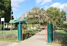 Front gates of Berrigan Public School, celebrating its centenary