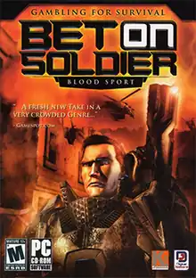 Bet On Soldier: Blood Sport is a first-person shooter video game developed by French developer Kylotonn and published in the North American and UK market by Digital Jesters. The story revolves around an unknown world war where elite soldiers meet each other in a battle to the death in one-on-one deathmatches. These deathmatches are broadcast all over the world as a televised sport named "Bet On Soldier" and since has become the favorite form of entertainment with many viewers betting on soldiers.