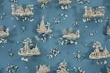Katleman's work addresses dualities[5] between nature and culture; order and chaos; kitsch and fine art; dark humor and optimism; consumption and desire.[6][7] Her sculpture is informed by parallels and differences between classic European decorative arts and American pop culture.[2] The objects that she casts into sculpture are sourced from dime store trinkets, gadgets, dolls and toys.[7] Katleman is influenced by porcelain rooms, such as The Royal Palace of Aranjuez in Spain;[8] Toile de Jouy wallpaper found in Versailles and the Victoria and Albert Museum;[9] and time studying Italian porcelain reliefs in the Salottino di Porcellana room at the Royal Palace of Capodimonte, Naples, which she visited during an artist residency at the American Academy in Rome.[10]