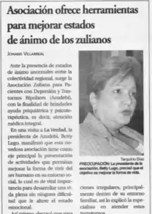 - 1 2 "Asociación ofrece herramientas para mejorar estado de ánimo de los Zulianos" (Association offers tools to improve the mood of the people of el Zulia), Betty Lugo interviewed by Maracaibo newspaper "La Verdad", published on May 27, 2006.