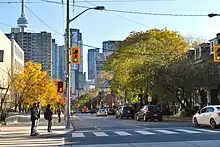 Beverley Street is a minor road and major bike route located in the central area of Toronto, Ontario. The street was put in place in the 1870s, with large and coveted lots alongside.[1][2] It is of general consensus among locals that the road acts as the division between the Grange and Baldwin Village neighborhoods on the east side of the street and Toronto's main Chinatown on the west side, respectively.[3] It is designated bicycle route #35 in Toronto's cycle network.
