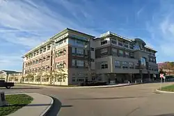 Installed in 1981, Beverly High School became the first school in the country to have solar panels. These 100 kW ground mounted panels were supplanted by 83 kW of roof mounted solar panels in 2011.[10] In 2022, the old solar panels were removed and a new solar panel array was added to the hill.