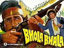 Bhola Bhala is a 1978 Bollywood action film, directed by Satpal and produced by V. Gopi Krishna. The film stars Rajesh Khanna in a double role and was paired opposite Rekha and Moushumi Chatterjee. The film revolves around the innocent insurance agent Ram Kumar Verma, who falls into the trap of the bandit Nathu Singh, who in turn wants Ram to endorse a Life Insurance Policy in the name of Nathu Singh, so that Nathu can fake a death claim and get the amount from LIC company. The film was a commercial hit upon its release. The musical instrument kalimba was played by Homi Mullan for "Jhuk Gayi Aankhen".[1]