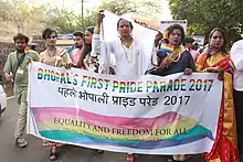 - 1 2 3 4 "LGBTQ community parade with pride in first for Bhopal, demand welfare board for Transgender/Sexual Minorities". The New Indian Express. Retrieved 17 June 2017.