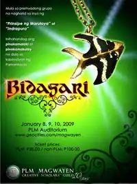 Bidasari is the final-installment of a trilogy of Filipino-language stage plays produced and written for Magwayen, the premier theater group of the University of the City of Manila. It was based on the original epic of the same name or title.