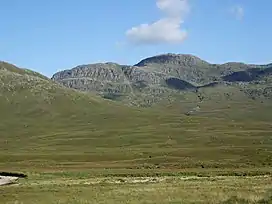 The mountain, also known by the nickname "Cheese Grater", is located on the Attadale Estate.[11][12] The bedrock is of the Glenfinnan Group of the Moine Supergroup – highly metamorphosed sedimentary sandstone.[13]