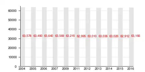 According to the Central Statistical Office data, the district's area is 18.47 square kilometres (7.13 square miles) and 63 029 people inhabit Bieżanów-Prokocim[1] at the density of 3,413 people per square kilometre (8,840 people/sq mi).