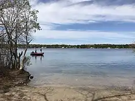 Big Sandy Pond is a 134-acre (0.54 km2) natural kettlehole pond in Plymouth, Massachusetts. It is a semi-private pond located within West Wind Shores, north of Buzzards Bay, Little Sandy Pond and Whites Pond, and east of Ezekiel Pond. The pond has an average depth of 19 feet (5.8 m) and a maximum depth of 37 feet (11 m). There are less than two miles (3 km) of shoreline. Bourne Road runs near the western shore of the pond. The Ponds of Plymouth, a large residential development, surrounds the northern and eastern shores of the pond. The Division of Fisheries & Wildlife provides access in the form of a concrete pad ramp suitable for trailer boats off Gunning Point Road, a dirt road, at the southeastern shore.