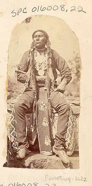 Big Spotted Horse was a Pawnee warrior and raider who lived during the 19th century. He belonged to the Pitahawirata band or division of the Pawnee tribe.[1]: 60