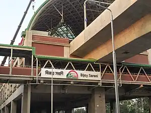 Bijoy Sarani (Bengali: বিজয় সরণি, romanised: Bijoy Shoroni) is an elevated metro station of the Dhaka Metro's MRT Line 6. This station is located in the area of Tejgaon Thana. The station began its service on 13 December 2023.[2]