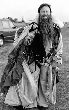 He also invented the pull-out and throw-out pilot chute.[4] A pilot chute is a small parachute used to extract and deploy a main parachute. The throw-out approach replaces the spring-loaded pilot chute which was released by a rip-cord. The throw-out system allows the skydiver to deploy his or her pilot chute directly into the air stream. Other inventions include the Skyhook RSL[5][6] safety device and the "Sigma System" for tandem drogue release.