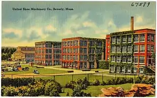 A vintage postcard with the United Shoe Machinery factory in Beverly, Massachusetts, now Cummings Center