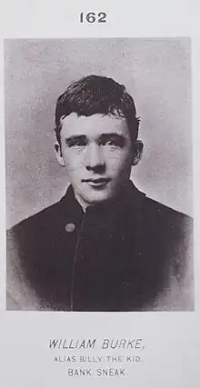 William "Billy the Kid" Burke was a gangster in the 19th century. Burke was born to an Irish-American family in Massachusetts on March 18, 1858.[1] By 1880 his mother had been widowed and the family had moved to Chicago and Burke had become a professional criminal. His brother, John “Fat Man” Burke, claimed he was a plumber but he also worked as a professional criminal. Two of Burke's younger brothers held positions in the telegraph office. This proved useful to him later when he needed access to messages sent by private detectives, such as the Pinkertons.[2]