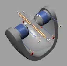 - ↑ Plücker (1861). "Ueber die Einwirkung des Magnets auf die elektrische Entladung" [On the effect of the magnet on the electric discharge]. Annalen der Physik und Chemie (in German). 113: 249–280. From p. 255: " … die Curven, welche dieselbe durchziehen, soweit die Schätzung des Auges reicht, genau die Form von Kreisbogen an[nehmen], die sämmtlich auf der die beiden Spitzen des Entladers verbindenden geraden Linie, als gemeinschaftlicher, senkrecht stehen." ( … the curves which [the luminous discharges] traverse, assume — as far as the eye can judge — exactly the form of circular arcs, all of which stand perpendicular to the same straight line that joins the two points of the electrodes.)