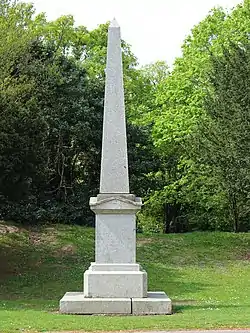 The Jackson Memorial Drinking Fountain near the main entrance to Birkenhead Park is in the form of an obelisk that was made in 1860. It is in polished granite, and stands on a pedimented plinth surrounded by steps. It is dedicated to John Somerville Jackson who was instrumental in the creation of the park.[24]