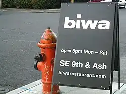 In 2016, Biwa relocated and "split" within the same building, becoming Parasol Bar and the Japanese restaurant Biwa Izakaya. Parasol closed in 2017.[5] Owners Gabe Rosen and Kina Voelz announced plans to close the restaurant in mid 2018.[6][7]