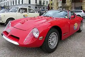 Originally powered by a 1,481 cc Fiat inline-four engine, the car officially became the Europa with the introduction of an 1,897 cc Opel engine. The 1.9L engine was mounted behind the front axle, like in the Strada, produced around 110 hp (82 kW) and allowed the Europa to reach a claimed top speed of 128 mph (206 km/h).[2] The Europa also featured a fiberglass body, penned by Bizzarrini designer Pietro Vanni, independent front and rear suspension, a limited slip differential and four wheel disc brakes. Between 12 and 17 examples were said to have been built by Bizzarrini;[3] the definitive number is unknown, as the factory did not keep records. However, some cars, sources say around 20, were assembled in the late 1960s and early 1970s using Europa parts and unused chassis from the Bizzarrini factory after they went bankrupt. However, these cars were not assembled by Bizzarrini themselves.[4]