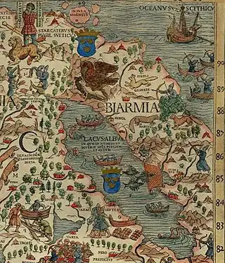 Bjarmian languages are a group of extinct Finnic languages once spoken in Bjarmia, or the northern part of the Dvina basin.[1] Vocabulary of the languages in Bjarmia can be reconstructed from toponyms in the Arkhangelsk region, and a few words are documented by Norse travelers. Also some Saamic toponyms can also be found in the Dvina basin.[2][3]