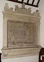 The Church of England parish church of Saint Mary the Virgin was originally built about 1190.[2] The five-bay arcade between the nave and north aisle survives from this time. In the 13th century the chancel, nave and north aisle were remodelled, and the easternmost bay of the aisle was projected northward to form a north transept.[2] Early English Gothic lancet windows in chancel, nave and north chapel date from this time. The north doorway of the north aisle dates from the 14th century. In the 15th century the bell tower was built into the nave and the stone pulpit was built.[2] By the end of the 16th century the north transept had become the memorial chapel of the Hungerford family. Built into the north wall is a substantial stone monument to Eleanor Hungerford (died 1592): a recumbent effigy framed by Corinthian columns. The chapel also includes an English Baroque cartouche to Anthony Hungerford (died 1703) on the west wall.[2] Black stone plaques on the floor record other members of the family.
