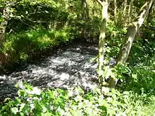 The Black Brook rises near the border of Calderdale and Kirklees next to Scammonden Dam. It flows downwards through Stainland Dean, and then between Greetland and Stainland. Most of the river, at this point, forms a parish border between the parishes of Greetland and Stainland. The Holywell Brook flows into the Black Brook before flowing into the River Calder at West Vale.[1] The combined length of the two brooks is 8.85 miles (14.24 km) and they drain an area of 12 square miles (30 km2).[2]