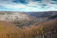 The Black Forest Trail has been cited as one of the most scenic and challenging backpacking routes in Pennsylvania, with dozens of expansive vistas,[3] several rugged descents into and out of Pine Creek Gorge,[4] and remote plateau areas with evidence of railroad and logging operations from the late nineteenth century.[5]