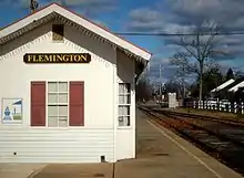 Flemington (Main Street) Station building utilized by local bank Flemington was the former terminus station of the Central Railroad of New Jersey's South Branch in Flemington, New Jersey. Service at the station began on July 1, 1864 and passenger service was discontinued on April 25, 1953.