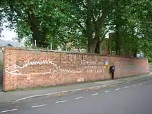 The road includes one of the longest lasting and still extant pieces of outdoor graffiti in Oxford. On a brick wall forming part of Keble College, opposite the Department of Statistics building, are two large dinosaurs in white and blue paint. The caption "REMEMBER WHAT HAPPENED TO THE DINOSAUR!" is next to the white dinosaur. By the blue dinosaur, perhaps intended to resemble an alligator, is a riposte "I DID, AND LOOK WHAT HAPPENED TO ME".